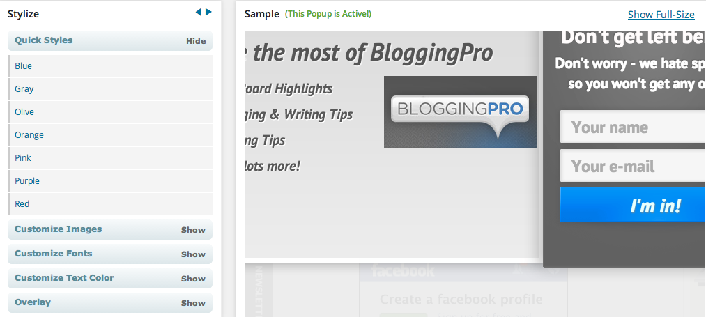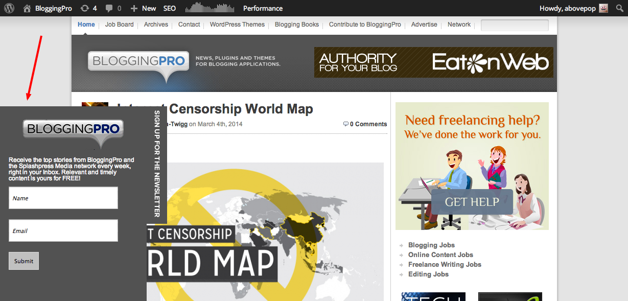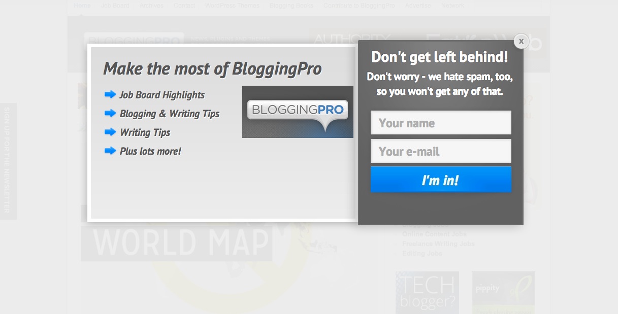 You’ll understand then, that when the idea of using a popup plugin for BloggingPro (and other Splashpress Media sites) were brought up, I was less than enthusiastic. Then again, I recognize the fact that many other big web sites are using popups – not to mention my belief in trying something at least once and seeing how it goes.